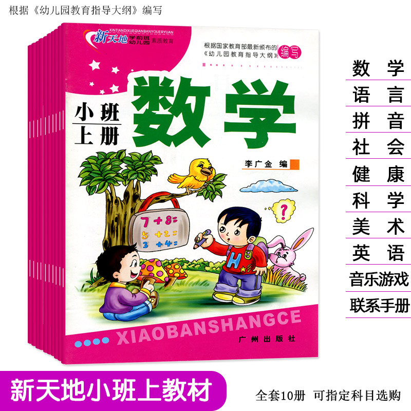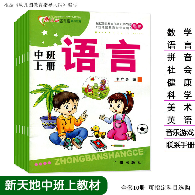 新天地幼稚園の中クラスの教材は本を使って前学期の数学のピンインの言語は教科書の広州出版社を学びます。
