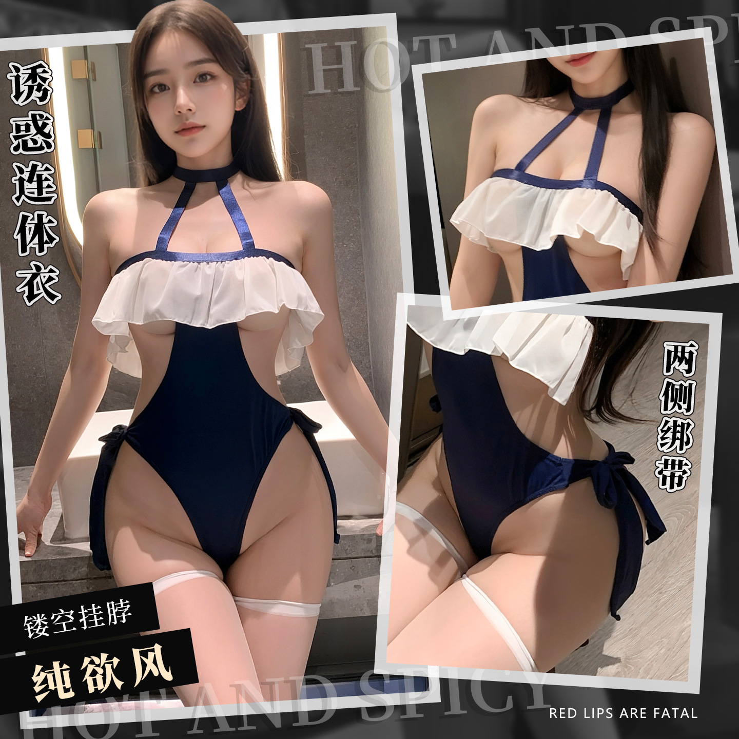 フェイム純情風中空ネックレス付きワンピース、中空露出胸元誘惑挑発ヌードヒップ脱ぐ必要なしセクシーランジェリー7040