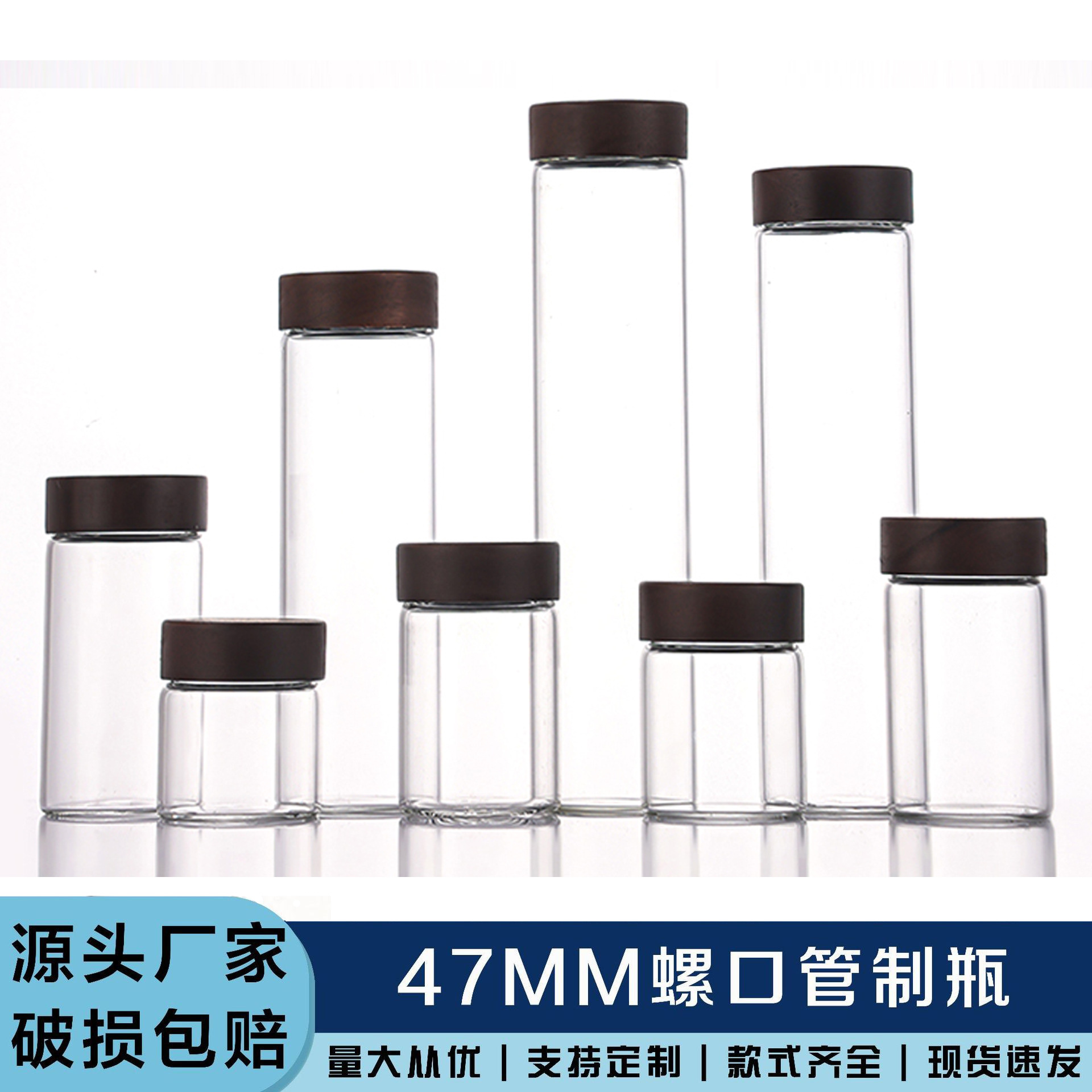 木目蓋付き高硼珪酸ガラス瓶(47mm)工芸品・手芸品展示用包装瓶・密封瓶・茶瓶(メーカー直販)