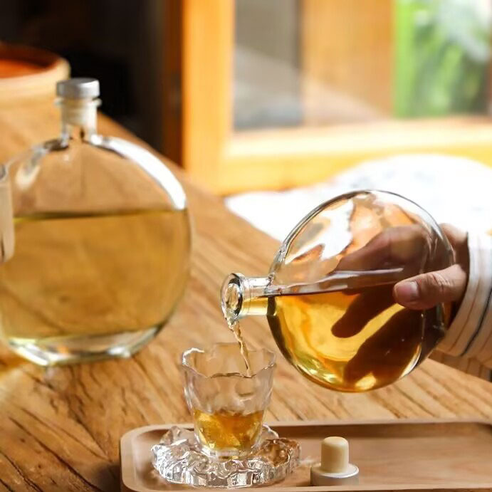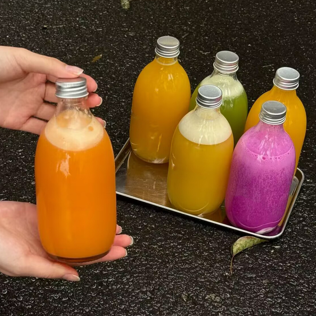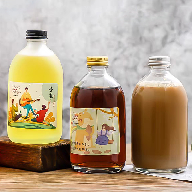 蒙砂アルミ蓋ナット口飲料瓶ジュースミルクティー包装瓶透明ガラス分注瓶果酒瓶メーカー卸売り