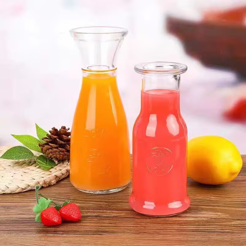 大口径アイスオレンジガラス瓶牛乳分注瓶大容量1リットル韓国式飲料瓶北欧小花瓶500ml