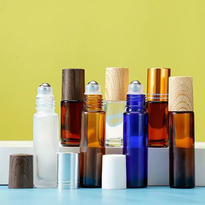 木目蓋つや消しローラーボールボトルローラーボールエッセンシャルオイルボトル 10 ミリリットル透明ボトルガラス香水卸売ボトル