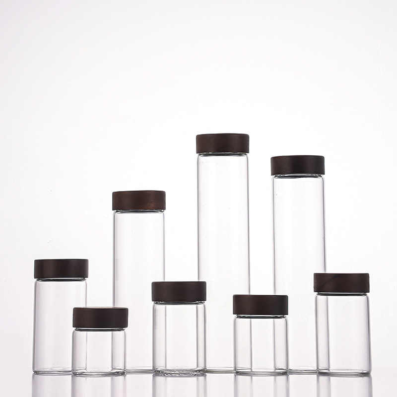 スポット卸売 47 ミリメートルアカシア木目蓋透明管ボトルガラス密封ボトルカプセルボトル小さな薬詰め替えボトル
