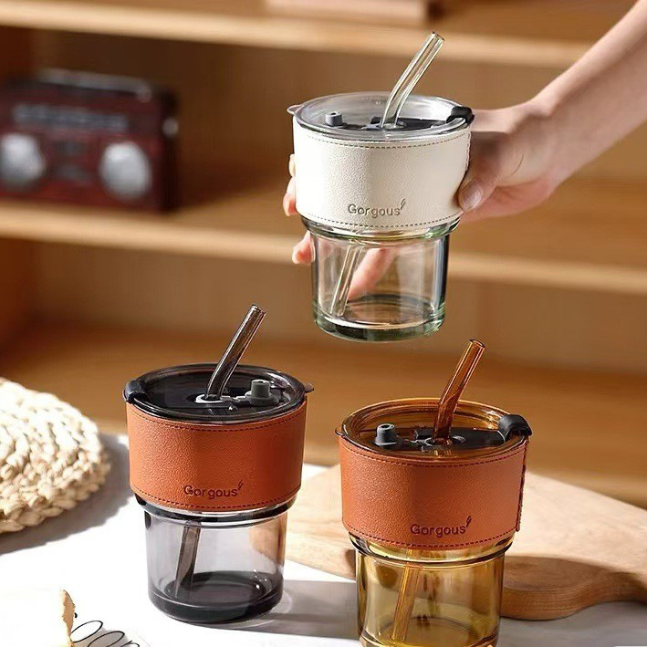 高颜値コーヒーカップガラスストローカップ女ins風水カップ蓋付きクリエイティブカップサブネット赤同品竹節カップ