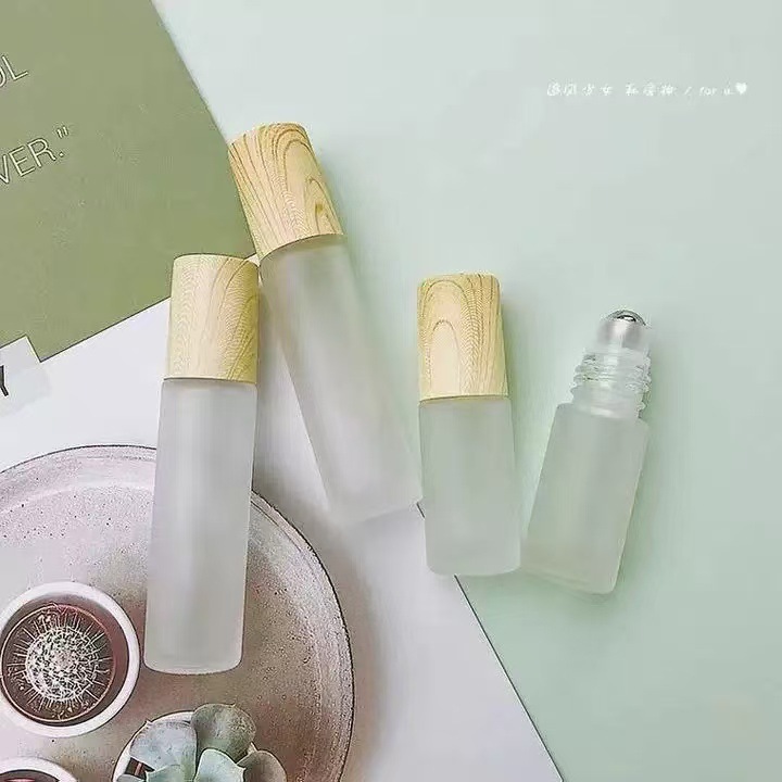 つや消しローリングボールエッセンシャルオイルボトル 5ml10ml リップオイルボトル木目カバー密封エッセンスローリングボールボトル空ボトル