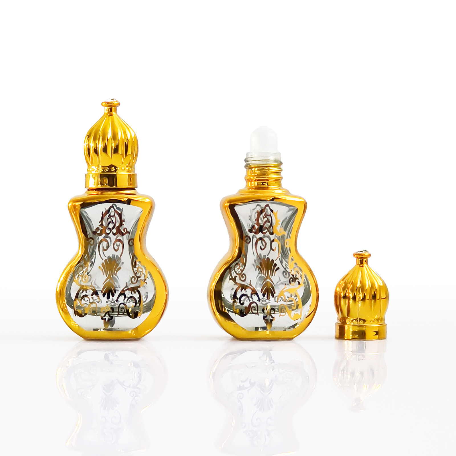 ひょうたんホットスタンピング香水ローラーボトル電気メッキエッセンシャルオイルボトル化粧品サンプルボトルマッサージローラーガラス空ボトル