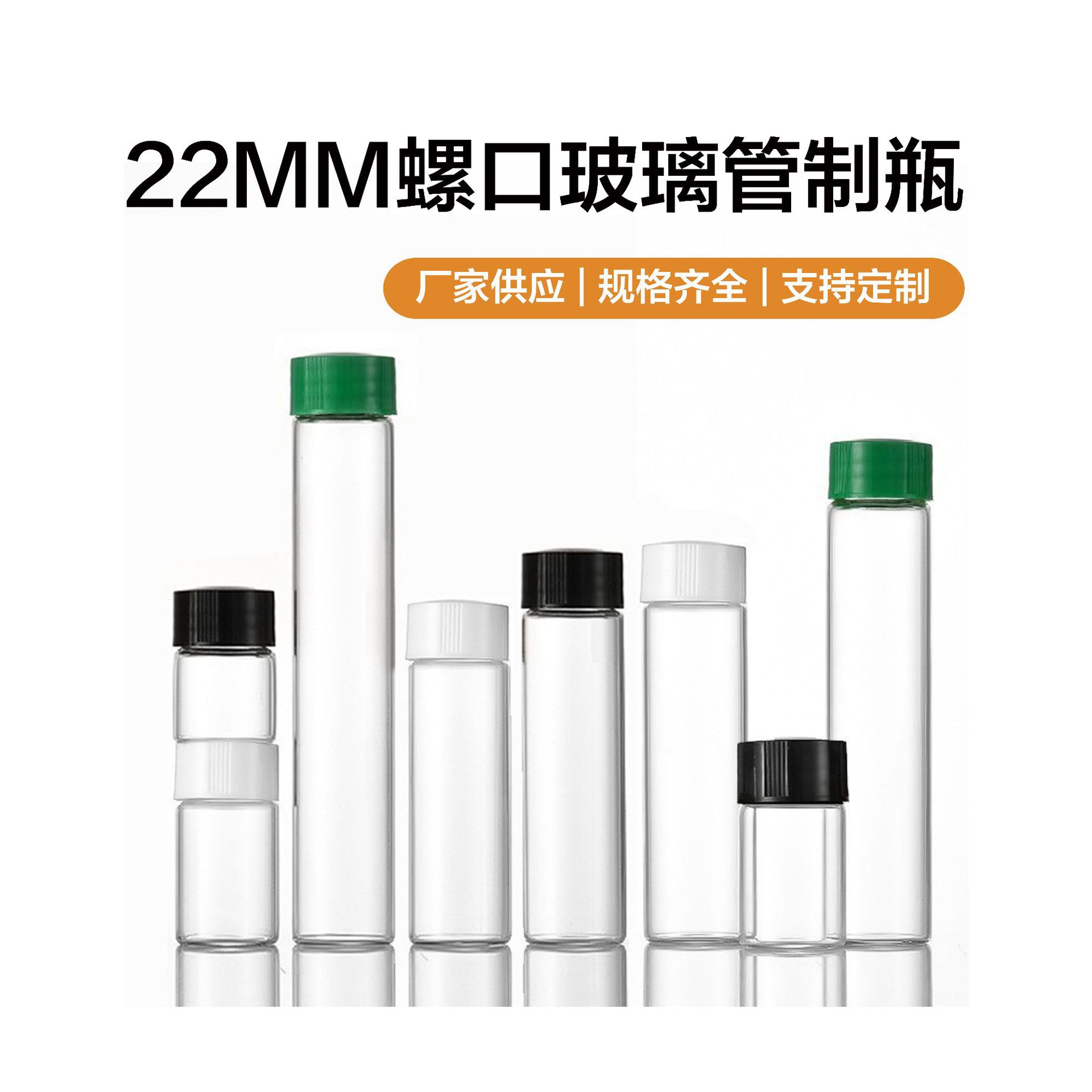 直径22mmのチューブボトル、プラスチックキャップ、小さな薬瓶、透明密封ネジ試薬瓶、サンプルガラス瓶、実験用瓶