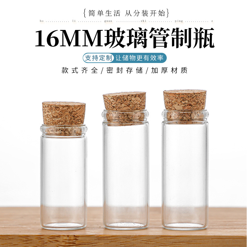 直径16mmのガラス瓶、コルクねじ口試薬瓶、漂流ガラス空瓶、ウィッシングボトル、冬虫夏草粉末スターボトル