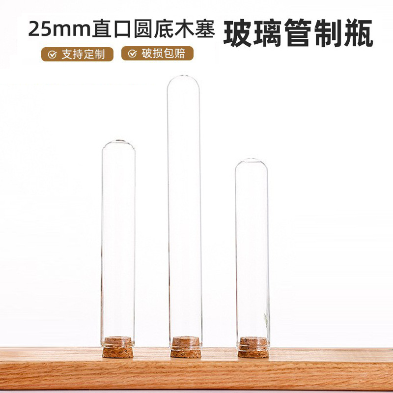 メーカー卸売 25 ミリメートル木栓丸底パイプボトル透明ガラスボトルストレート口試薬ボトル密封霊芝カプセルボトル
