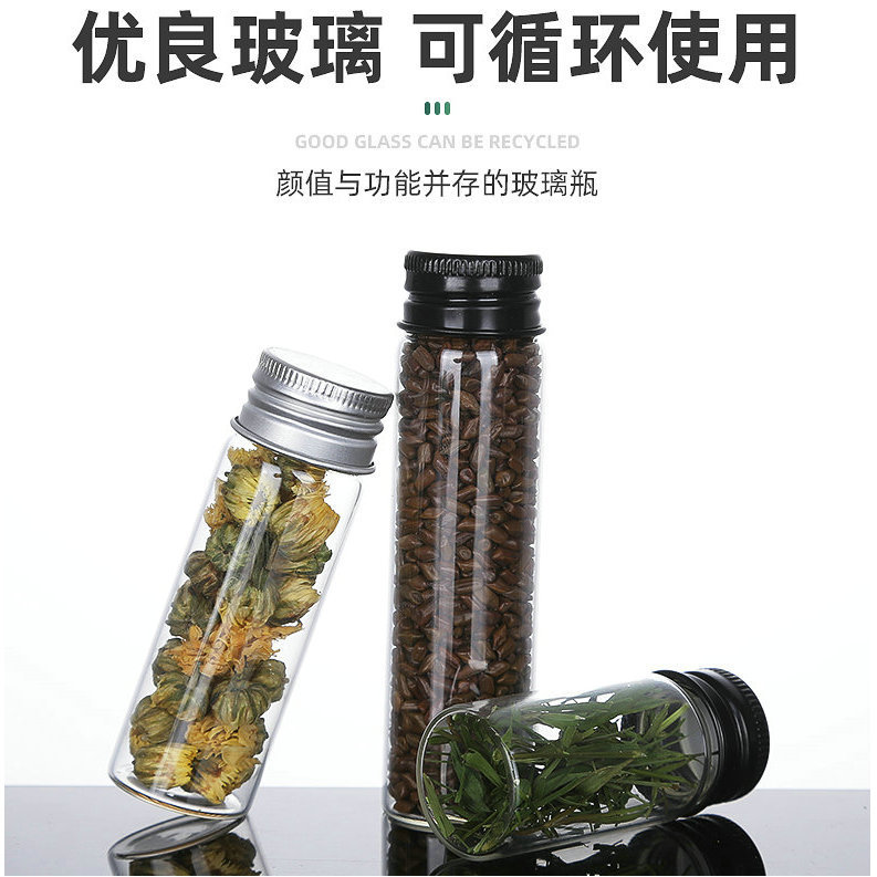 27径ホウケイ酸ガラスボトル、アルミキャップ、パイプボトル、レインボーガラスウィッシングボトル、ドリフトボトル、冬虫夏草カプセルボトル、瓶