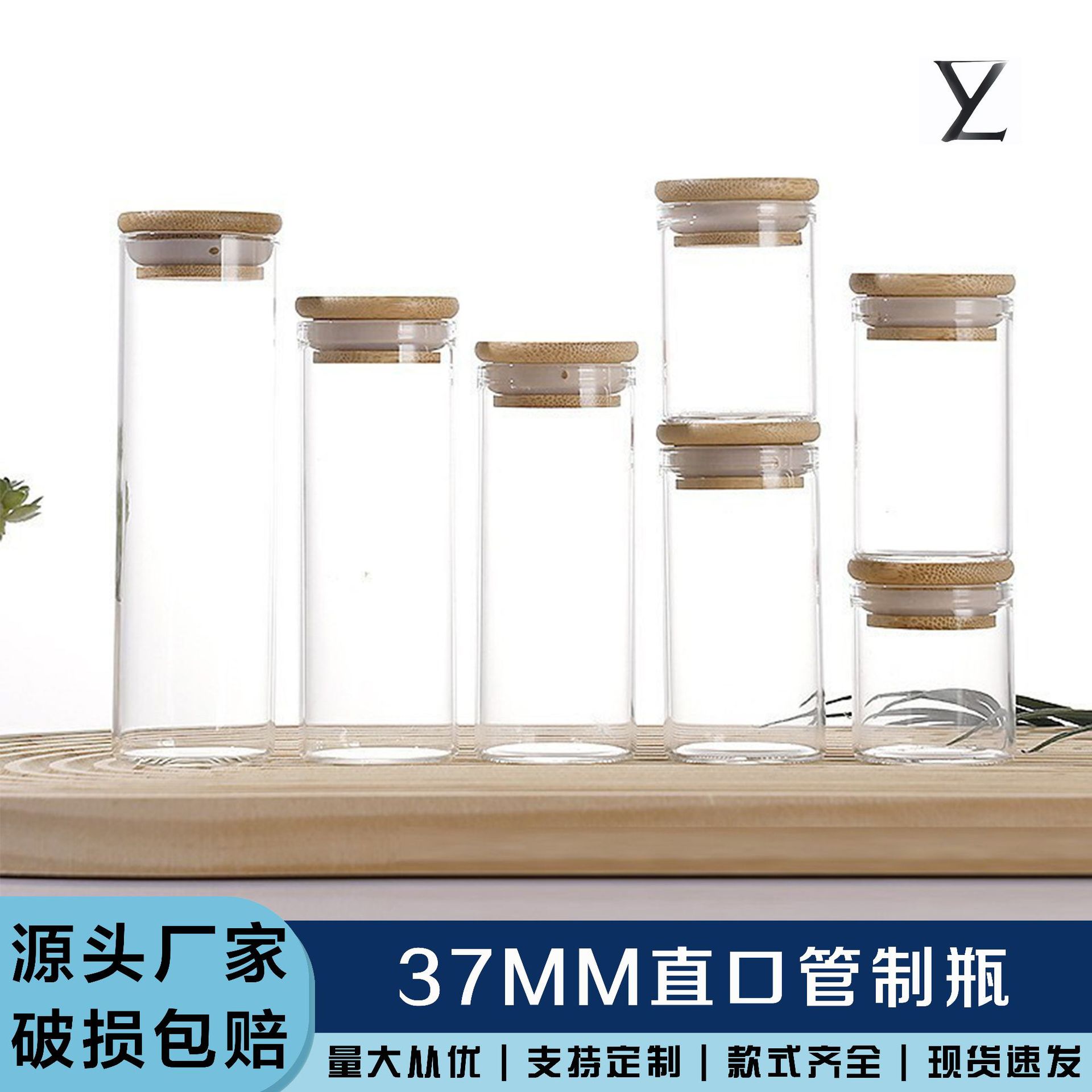 直径37mm竹蓋管ボトル、直口高ホウケイ酸透明ガラスボトル、冬虫夏草ボトル、レインボーウィッシングドリフトボトル