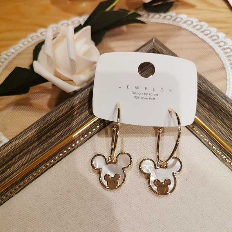 Insかわいいアニメミッキー要素ピアスネズミ年気質銀針長型百合ドリル韓国版ファッションイヤリング