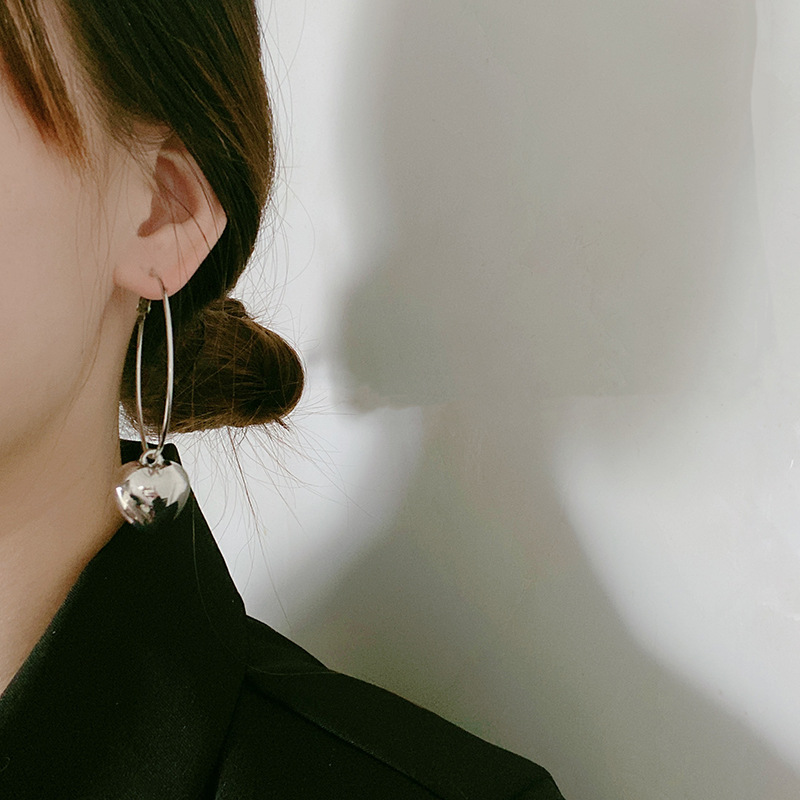 韓国の新型楊冪同項高級感クール甘925銀針光沢面愛桃心大輪イヤリングピアス