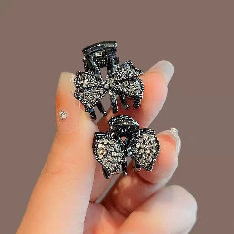 2023新型日韓合金はダイヤモンドの蝶結びを入れて、精巧な黒色の小さいサイズのヘアピンのネットの赤い前髪のトップのクリップを挟みます。