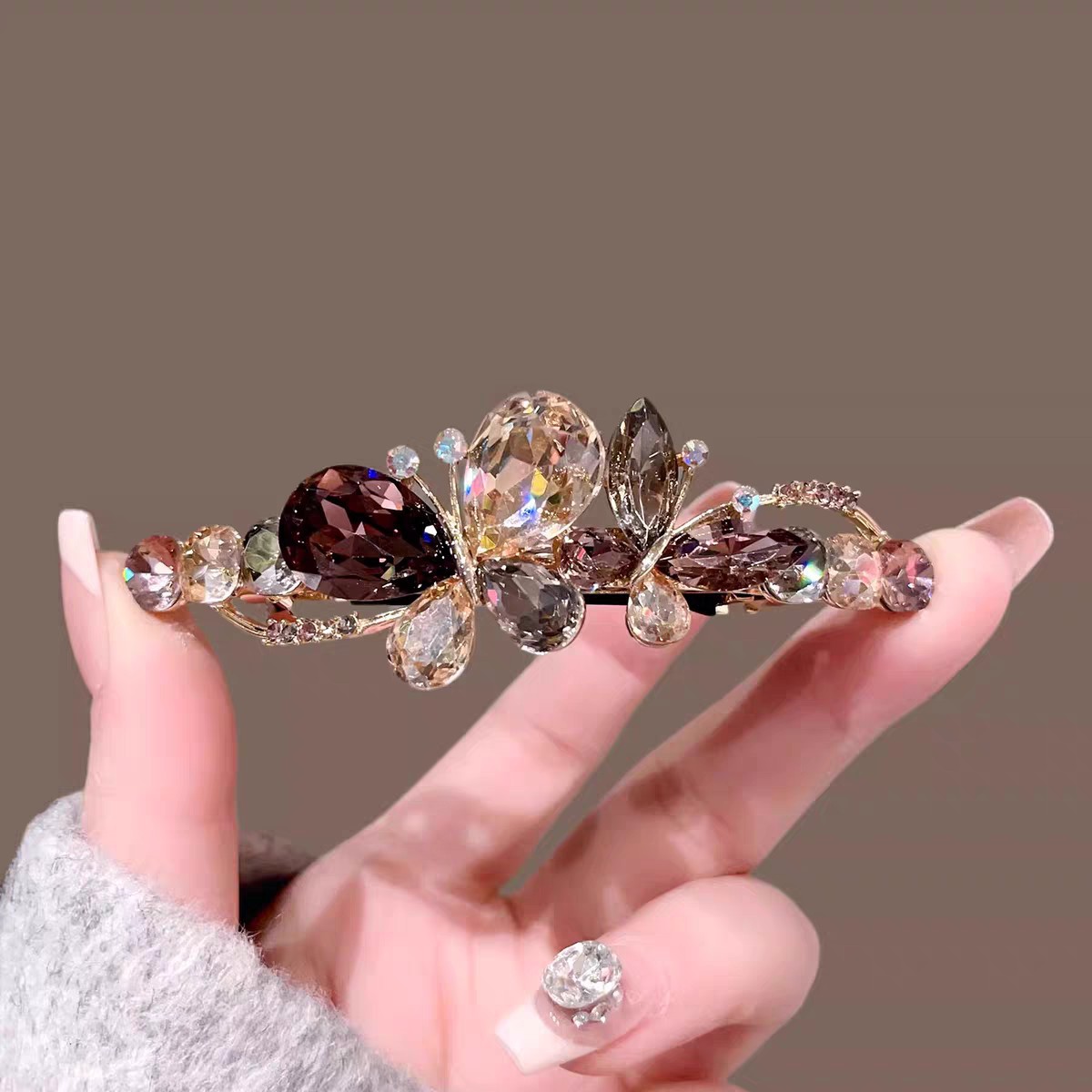 8cm スプリングクリップ蝶バックルクリップスプリングクリップクリスタルポニーテールクリップサイドクリップ女の子のヘアクリップ