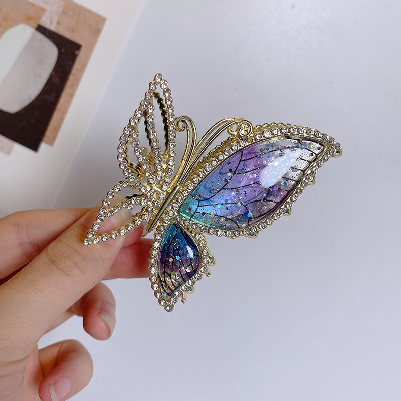夢のような琥珀の蝶が女性の夏の高級感をつかむ洗練されたヘアピンの後頭部サメのクリップ2022の新しいヘアピン