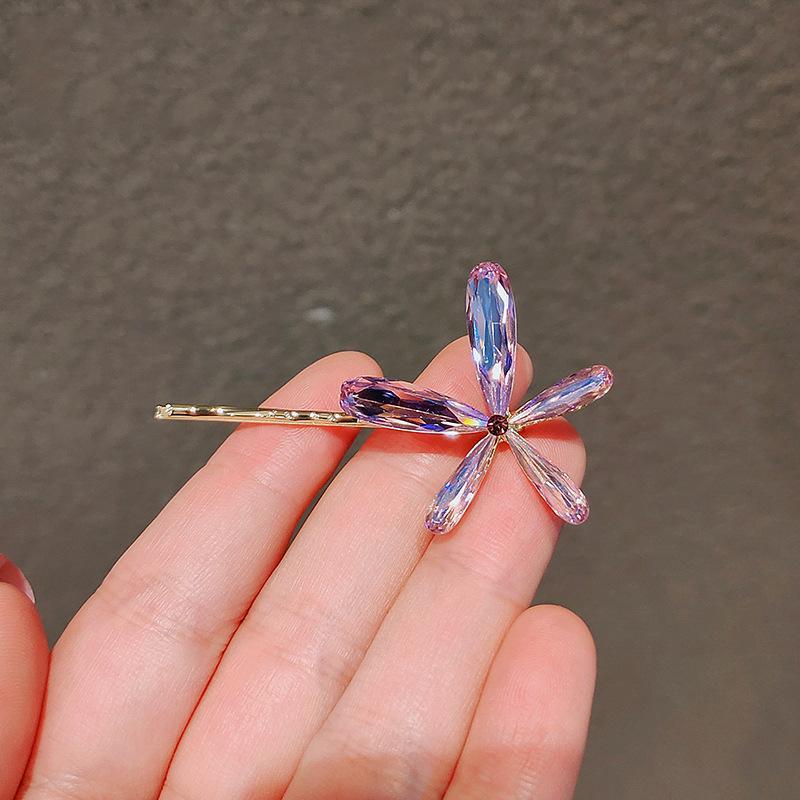 韓国の気質水晶ヘアピン森系の花前髪クリップ少女のサイドクリップ