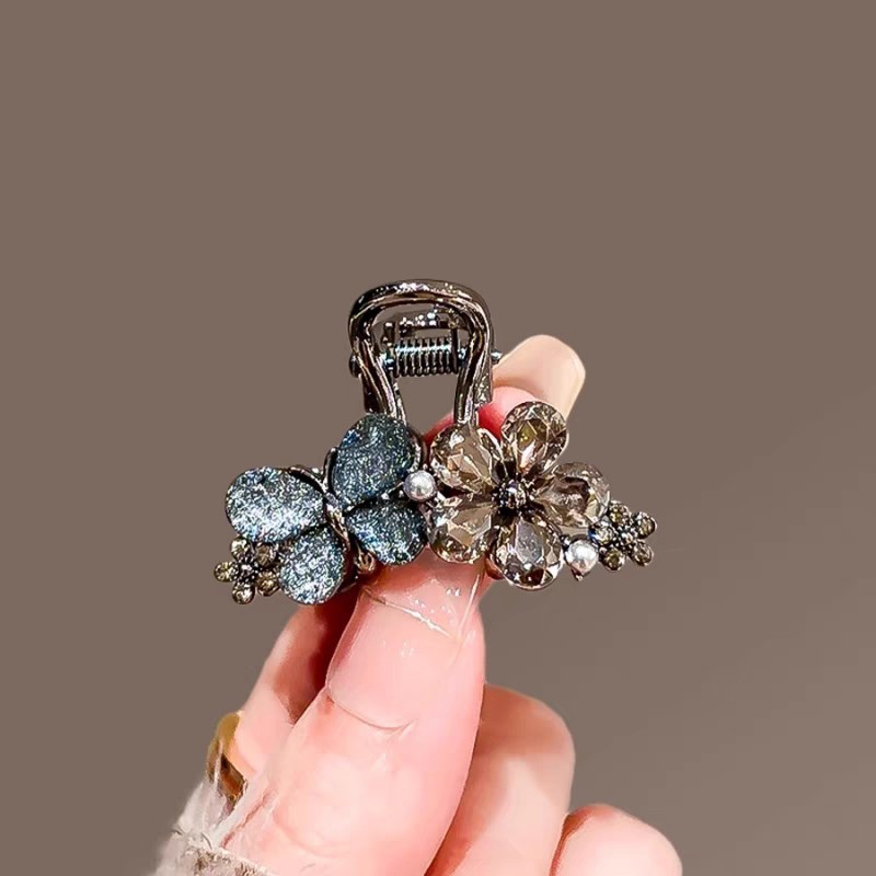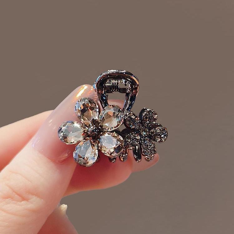クリスタルフラワーシャーククリップ、髪の量が少ないための小さな高級ヘアピン、後頭部のグリップクリップ、ハーフタイヘアピン