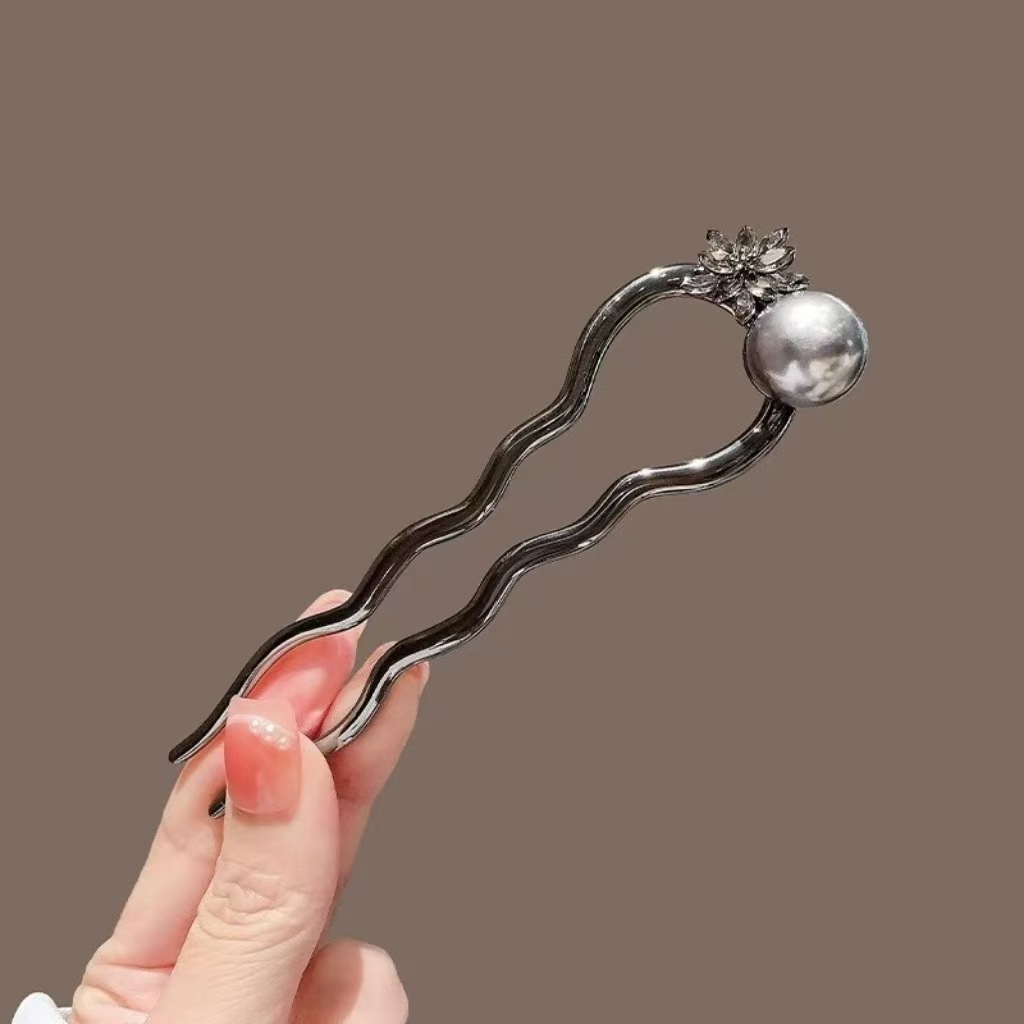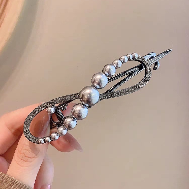 高級感パール後頭部ヘアクリップ女性の髪飾りツイストクリップ髪飾りカモ口クリップ
