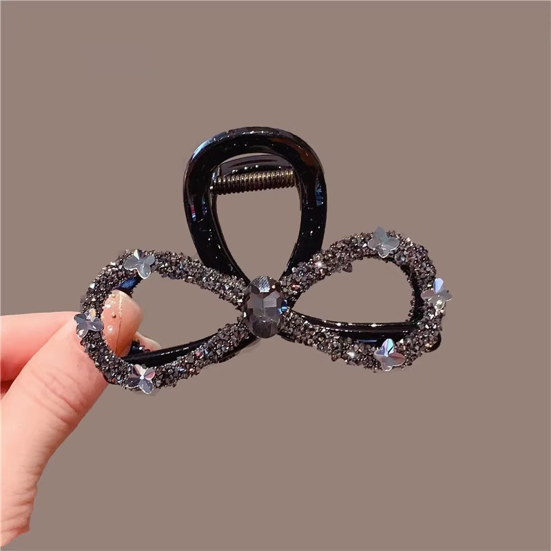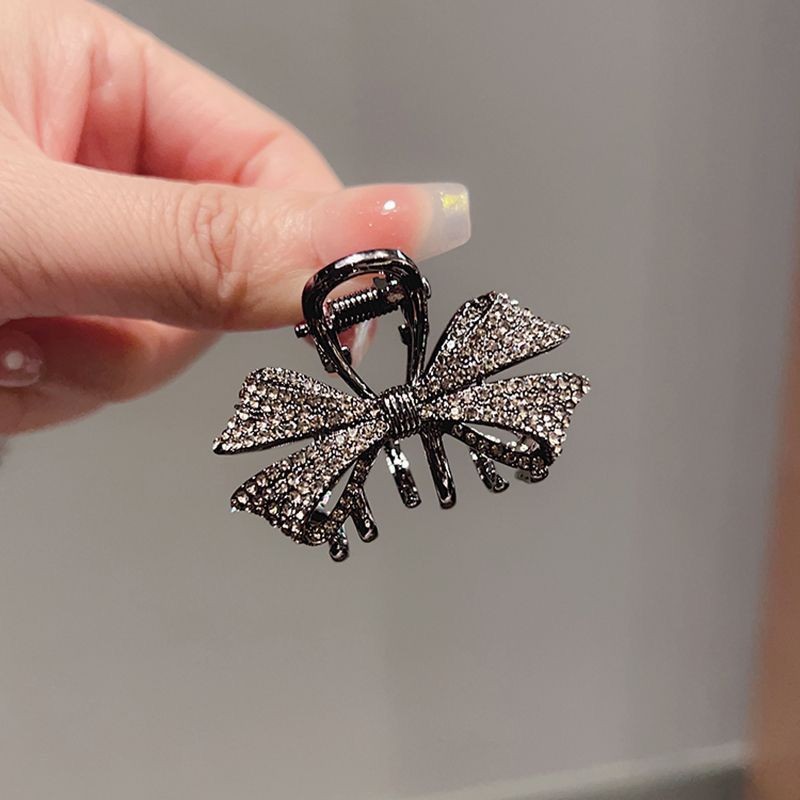 2024年新作ティアラブラックヘアピンハーフクリップ蝶結び小スナップトップクリップトランペットヘアピン高級感クリップ
