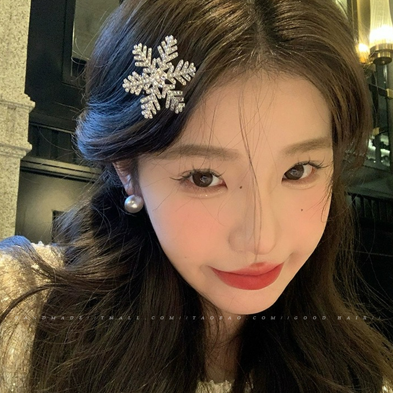 冬の超キラキラ雪花状ヘアピン金属前髪クリップ2023秋冬新作クリップクリスマス髪飾り