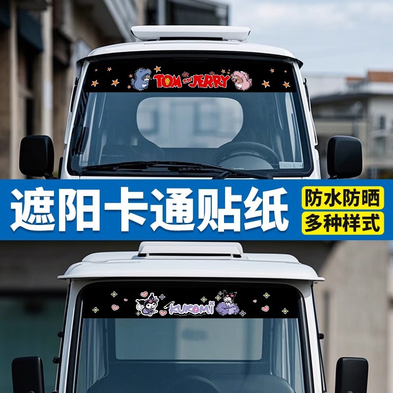 三輪電気自動車フロントガラス日焼け止めステッカー電動三輪車ステッカー装飾カーボンファイバーパターンサンシェード漫画ステッカー