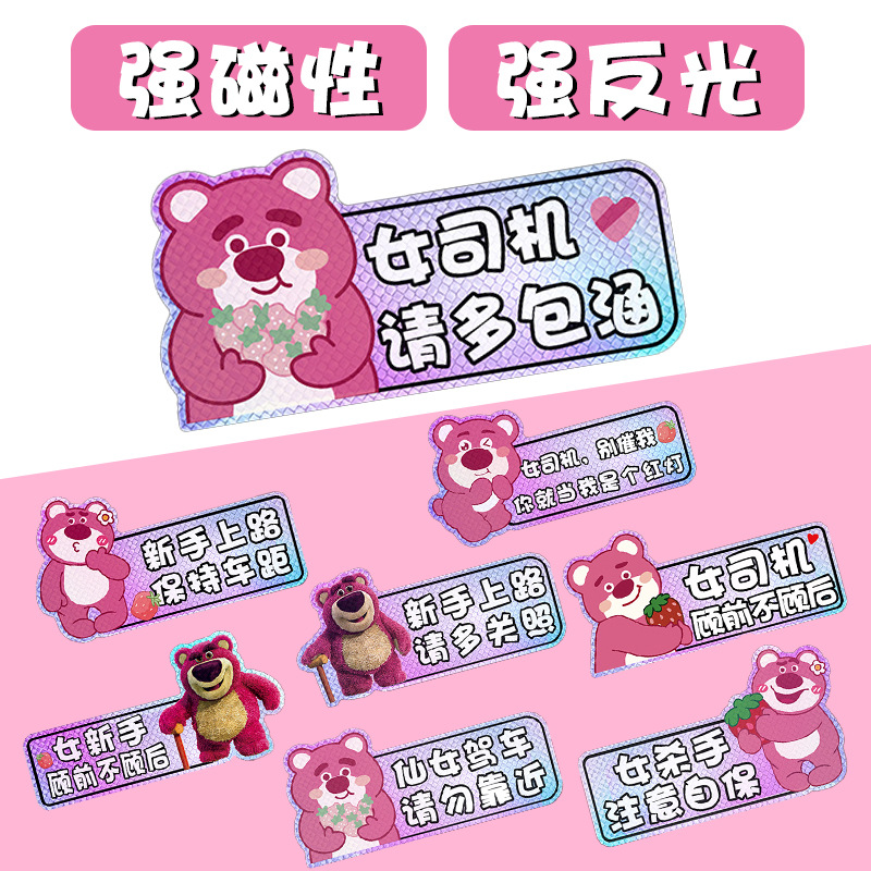 いちご熊新米出発磁気吸引車はダイヤモンド級の反射かわいいアニメ女性運転手が車のシールを実習する