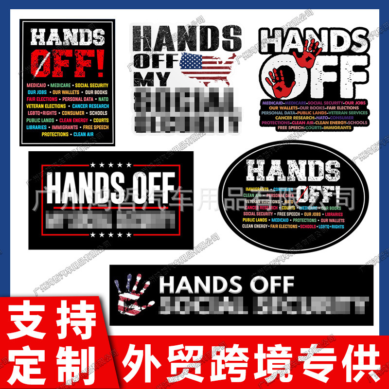アマゾンの対外貿易の爆発的なアメリカのHands off車は磁気吸引保険棒pvc自動車シールを貼っている