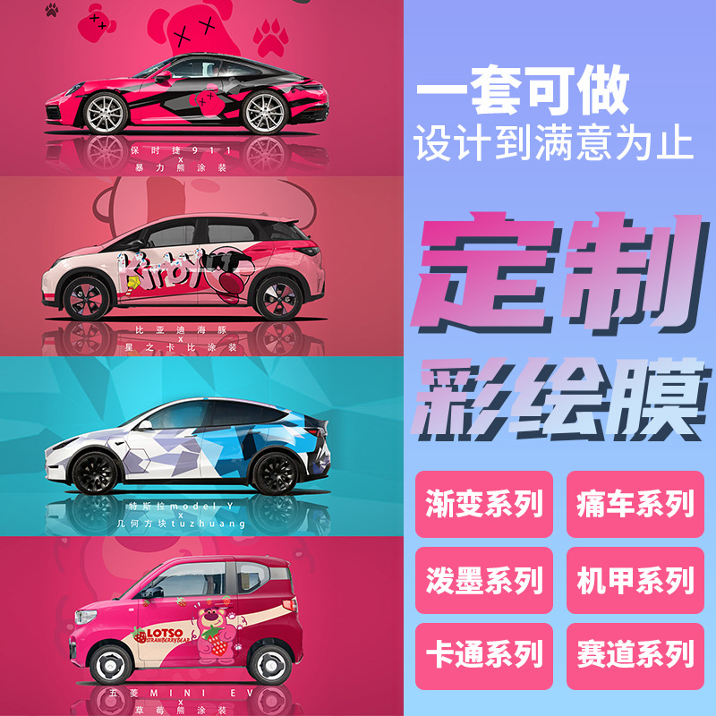 グラデーション塗装フィルムペット車変色フィルムボディステッカーパーソナライズされた車全体漫画イチゴクマ塗装カスタマイズ