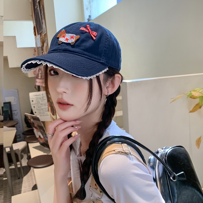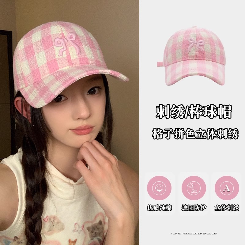 新しい多用途の甘いリボン刺繍野球帽夏韓国風チェック柄顔見せ小型日焼け止めひさしキャップ