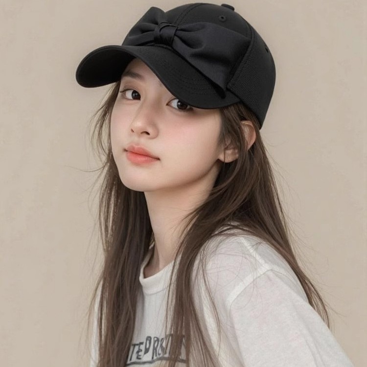 大きい蝶結びのアヒルの舌の帽子は顔を見せます。