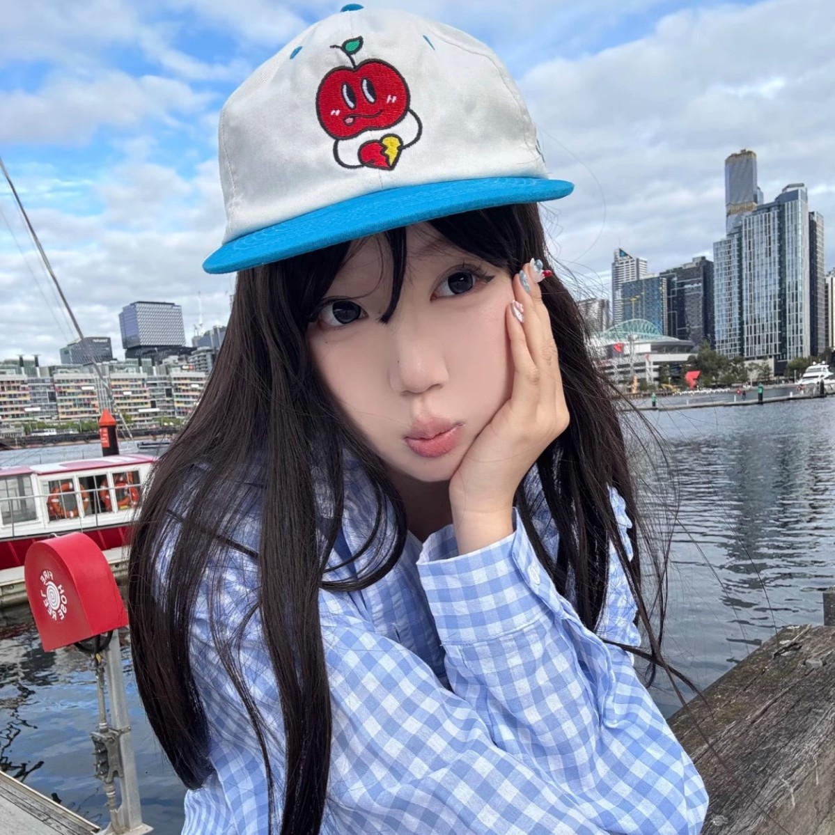 Apple Love 刺繍通気性フラットつば野球帽夏の太陽薄いサンシェード帽子漫画子供の楽しいアヒルの舌