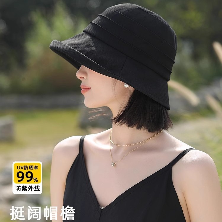 韓国版無地シンプルなプリーツフィッシャーマンハット2025年夏新作カジュアル多用途大きな頭囲日焼け止めサンシェード盆地帽子