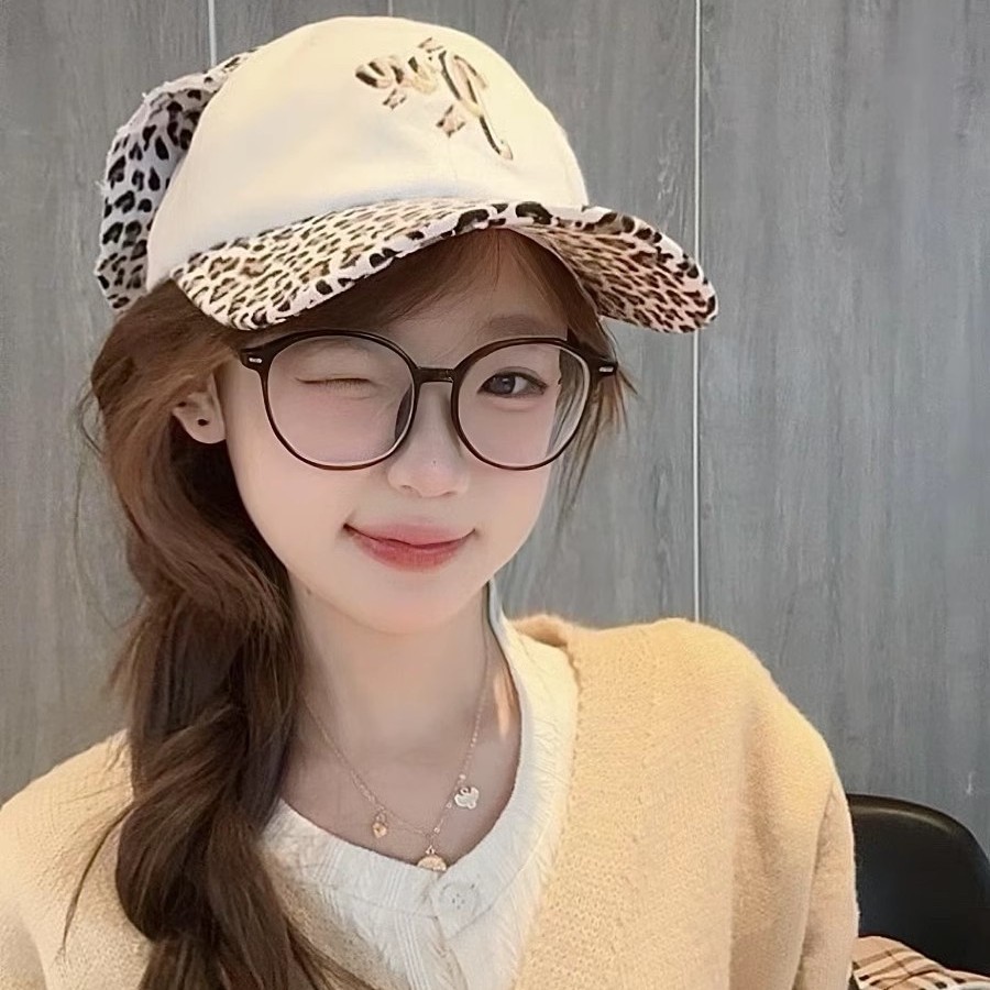 新しいヒョウ柄のカラーブロック犬耳ひさしキャップ、小顔、甘くてクールなホットガール、レトロな日よけと日焼け止めカジュアル野球帽