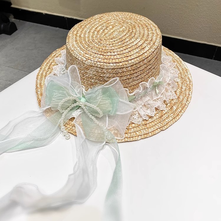 リゾートスタイルのレースのリボンメッシュタッセル麦わら麦わら帽子夏の屋外休暇多用途サンシェード手作り帽子