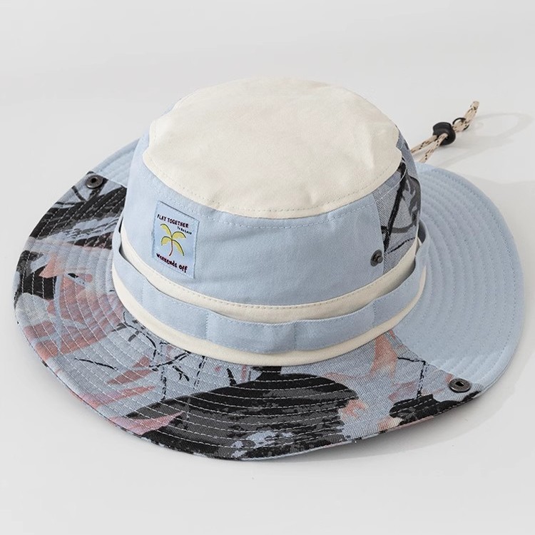 アメリカンレトロなココナッツツリーパッチフィッシャーマンハット、アウトドア登山、釣り、日よけ、日焼け止め、大きなつば、カジュアルで多用途な盆地帽子