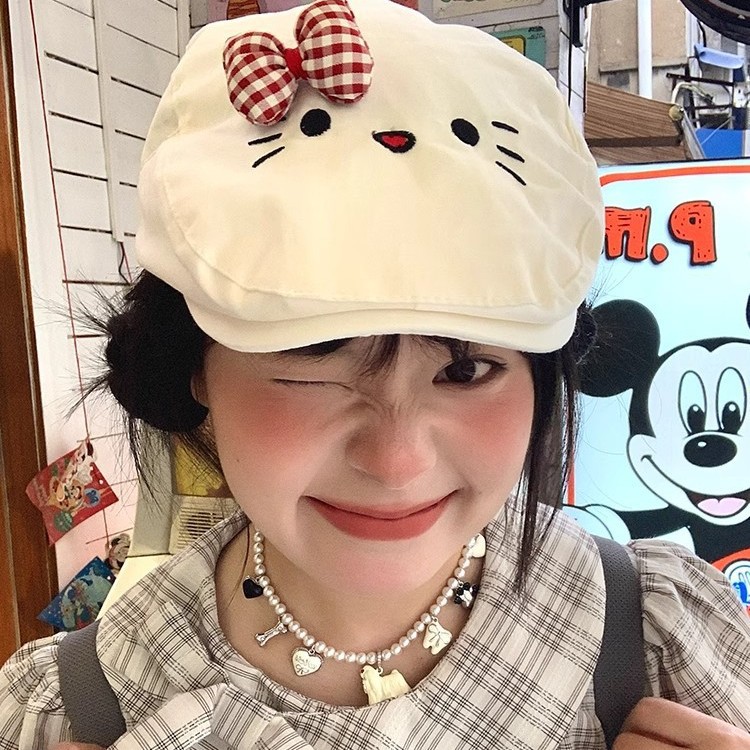 新しいかわいい kt 猫リボンフロントハット夏薄い甘いカジュアル多用途ファッション顔見せベレー帽