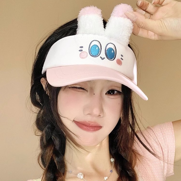 夏は甘くて多用途でかわいいピンクのウサギの空のつば日よけ帽子、顔が見える小さな日よけ帽子、屋外用日よけひさし付きキャップ