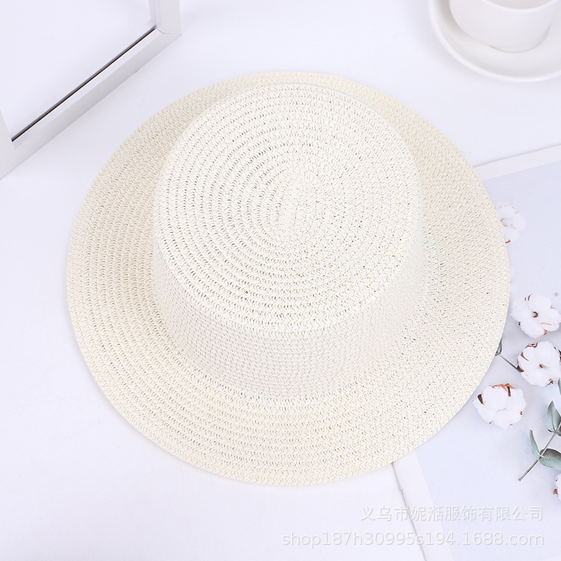女性用の編まれたフラットトップ麦わら帽子、夏の海辺の休暇の日よけと日焼け止め帽子、麦わら帽子、高品質の日よけ帽子