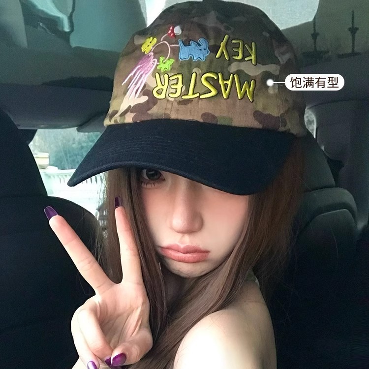 アメリカンレトロ迷彩色キー立体刺繍野球帽つば広帽子大きな帽子首周り顔見せ小夏ひさしキャップ