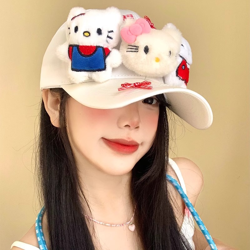 Kitty猫の漫画の人形のかわいいアヒルの舌の帽子y 2k亜比風の甘いクールなギャルの小さい衆の通気性の野球の帽子の子供