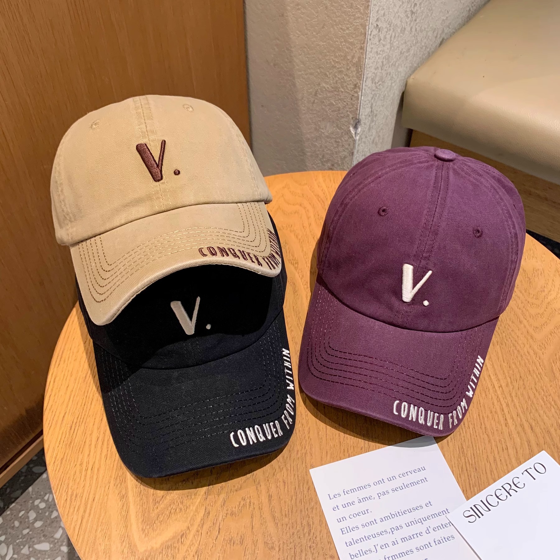 レター刺繍野球帽レトロコットンウォッシュ加工レディース秋冬新作小顔原宿風ソフトトップひさしキャップ