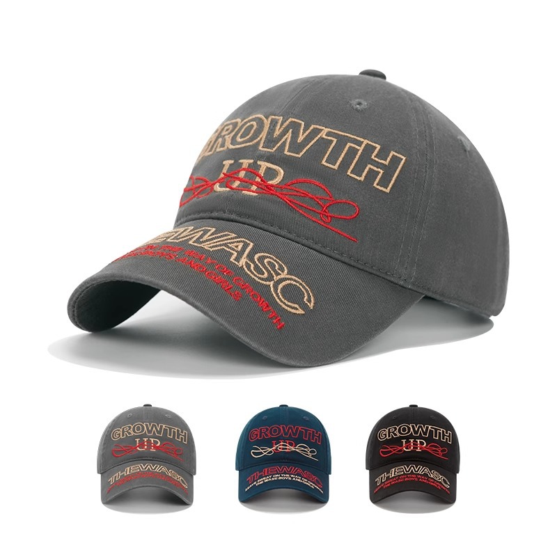 卸売韓国 2025 新しいアメリカンレトロ文字刺繍野球帽大きな頭囲日焼け防止ひさしキャップ