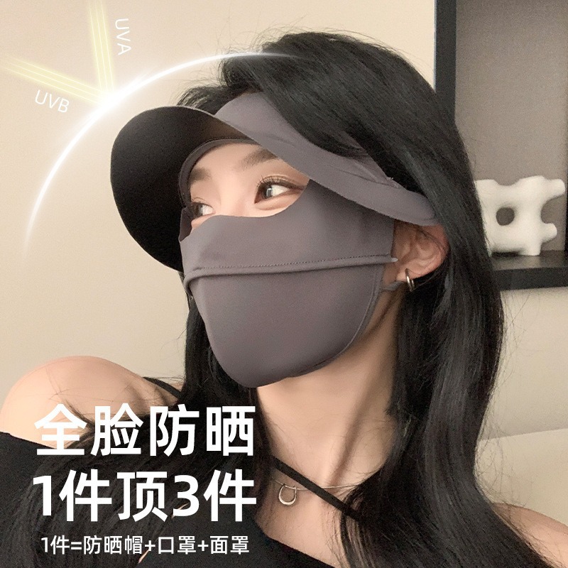 夏の黒ゴムつば日焼け止めマスク一体式日焼け止め紫外線防止薄い通気顔ジニ日焼け止めマスク