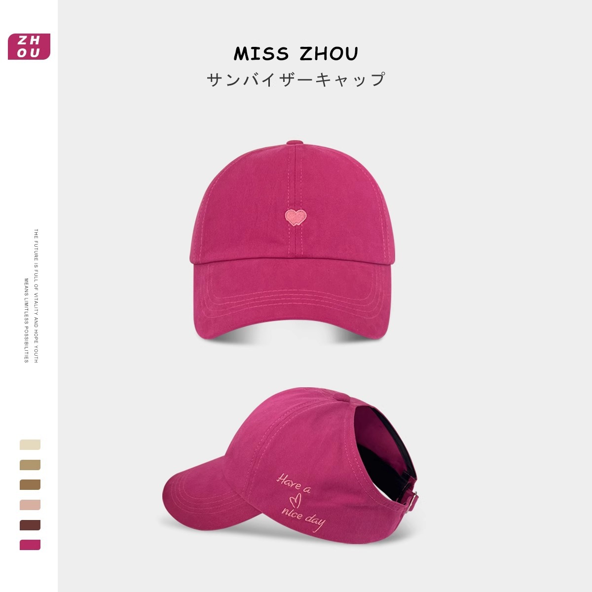 学院の風の愛の刺繍はポニーテールの半分の空の帽子の女性の夏の日よけの甘いクールな百合の野球の帽子のアヒルの舌の帽子の潮を刺します。