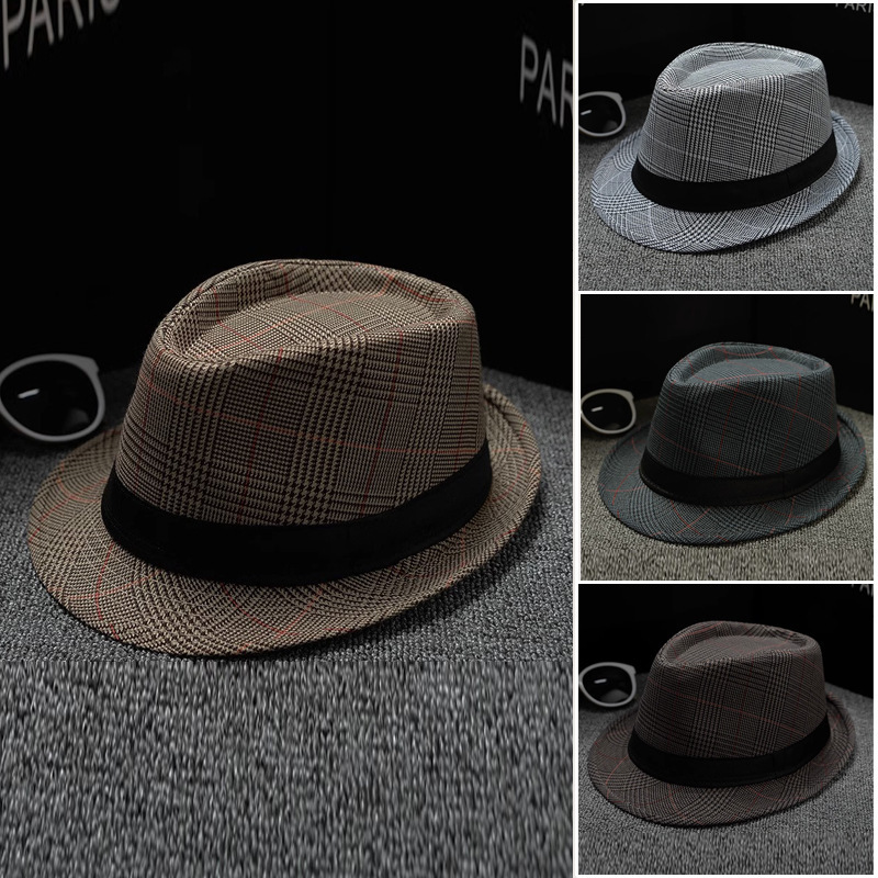 格子縞礼帽中高年春秋カジュアルジャズ帽紳士帽男性文芸日除け帽英倫パナマ帽子