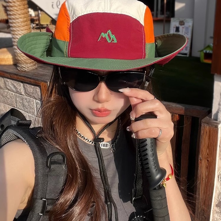 日系衝突色漁師帽女性夏屋外速乾通気日除け登山帽キャンプ日焼け止め釣り帽子男