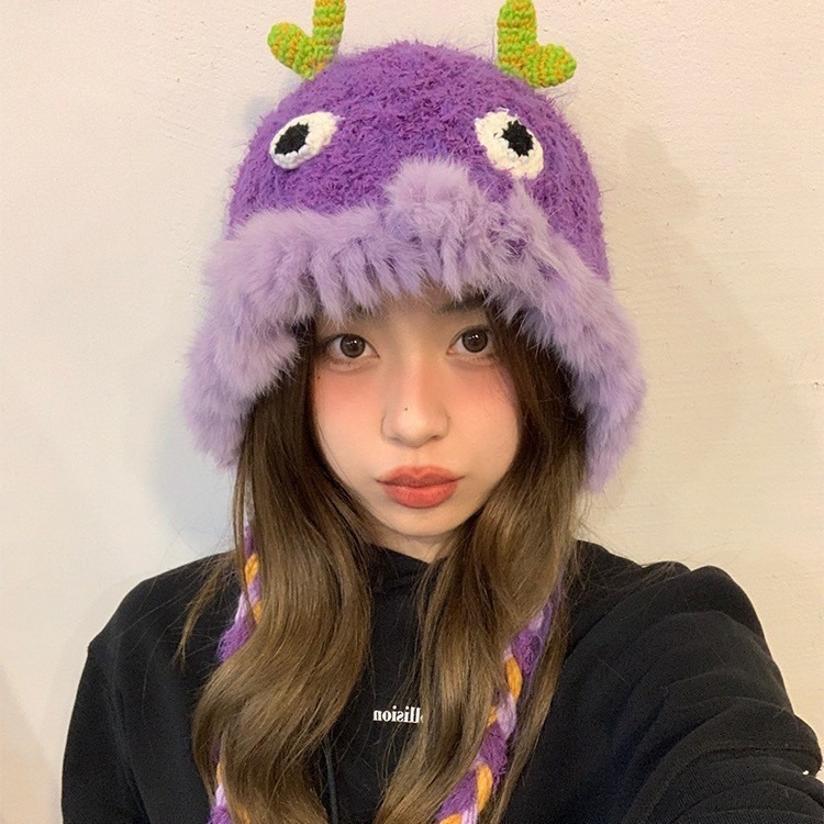 秋冬のかわいいおかしなモンスターアニメのベルベット帽保温毛糸帽包頭帽子かわいい甘い旅行