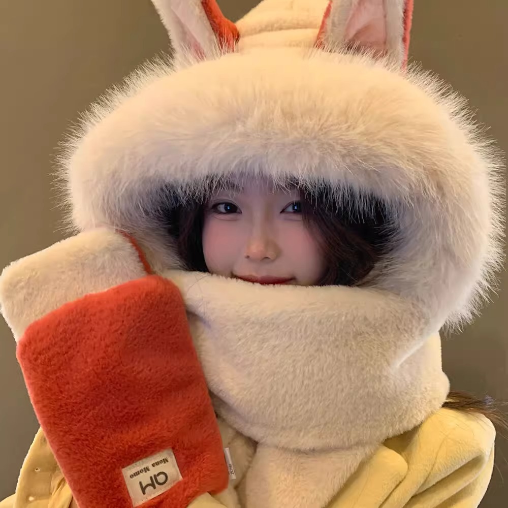 ぬいぐるみのマフラーの帽子は保温して耳を保護します。