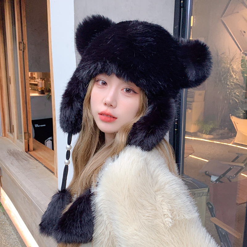 毛のふわふわした雷の前線の帽子の女子学生の冬の保温のかわいい熊の耳の帽子は顔の小さい自転車の東北の防寒帽の潮を現します。